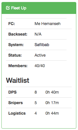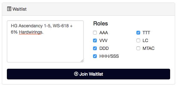 We use a website-based waitlist system to allow players to queue up for fleet, and for FCs to efficiently manage their fleet and perform invites.